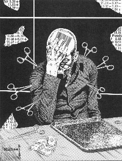Michael Allen The Modern American theme as depicted in the graphic commentary of Michael Allen is "The Crisis of Democracy". His art shows how that crisis is abetted by the cynicism of popular culture and the per- versities of ideology, the former resulting in the erosion of moral decency and the latter contrib- uting to the erosion of our common humanity. |