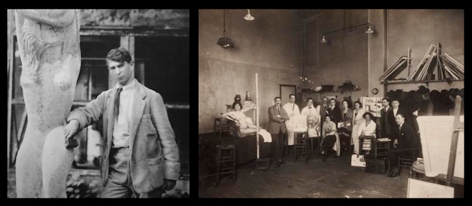 LEFT: Zadkine from: the-broom-cupboard.tumblr.com RIGHT: Fernand Léger’s Atelier Moderne studio 1924, from: J.W. Power: Abstraction – Création Paris 1934 The University of Sydney, Museum of Contemporary Art The Australian artist Power was associated with the London Group of British Modernists.
