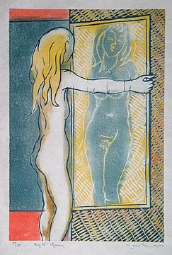 NOTE: This print is from the Gogmagog Press production A FEMINITY OF NUDES, a series of twenty large colour prints. The design for the prints derive from blind drawings, which are the starting point for the final prints, which are worked up and textured in a variety of ways, making for often striking images, alternately beautiful and disturbing. Cox had intended to produce twenty-five copies, but in the end made only five ‘artist proofs’, making A FEMINITY OF NUDES very rare indeed. As Colin Franklin has written, ‘With such varied imagination as they display one must regret that only five proof sets exist...’ (GOGMAGOG 159) |