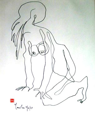 NOTE: Colin Franklin has written, ‘Morris Cox had for many years trusted a kind of life force in the accidents of line, ‘the reticulation of a cracked plate’ or flower-effect of cake paper when squashed into a printing surface. All sorts of effects were achieved in blind drawings, a whirling ballet in line on white. Each was signed, dated and given a BD stamp of affirmation in red. In his possession was a box of such drawings, with a printed apologia beginning: The purpose of this exercise is:Cox produced several thousand blind drawings from 1968 to the end of his life. Often he kept them in series, in the order of composition, as the very process of the drawings he felt were important. While the best of the blind drawings are highly appealing in their own right, Cox would use them as the basis for paintings and prints with often striking results. |