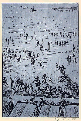 NOTE: THE EXCURSION (reckoned to be among the best of Morris Cox’s novels), was completed in 1928, and was only released in 1985 in an edition of 5 copies for the Gogmagog Photocopy Library. By this time, Cox was treating the photocopier as a means of producing original prints, not merely as a means of reproduction. This frontispiece is an example of this type of work. All prints made in this manner are signed and dated, as any other original work of art. |