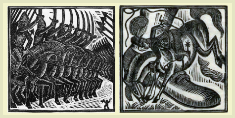 www.bloomsburyauctions.com via liveauctioneers.com Four parts in two volumes. 139, [1]; 137, [4] pp. Illustrated with 42 woodcuts and 27 initials throughout (many hand-colored), designed and engraved by David Jones. 10x7�, original half white linen and black boards, spines lettered in gilt, edges untrimmed and mostly unopened, acetate covers. No. 69 of 450 sets printed by Robert Gibbings. The first Golden Cockerel Press book with David Jones' illustrative work; who continued to work with the press for several years onward. Chanticleer 33. |