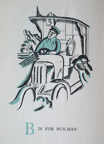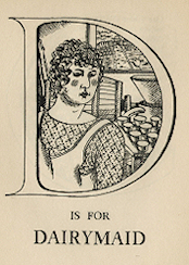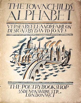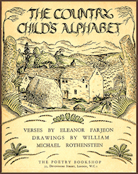 In 1924 Harold Monro of The Poetry Bookshop in London issued two alphabet books by children's author Eleanor Farjeon. One was The Town Child's Alphabet which was illustrated by David Jones, and the other was The Country Child's Alphabet, which was illustrated by the young (just over age sixteen) William Michael Rothenstein.
