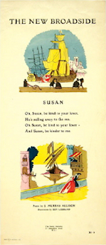 Booksellers and auction houses offer glimpses on the net of many of Eleanor Farjeon's books. Below is a sample of The Country Child's Alphabet and D is for Dairymaid (illustrated by the young Michael Rothenstein) from Aleph-Bet Books. And to the right, a sample of the Poetry Bookshop's popular Rhyme Sheets from Bloomsbury Auctions via liveauctioneers.com.