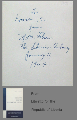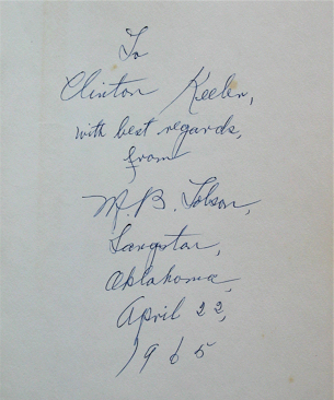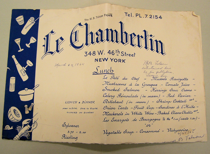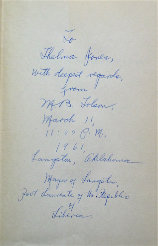 "M.B. Tolson entertained here by his publishers, Twayne, Inc."