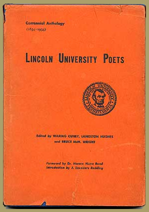 First edition. Edited by Waring Cuney, Langston Hughes and Bruce McM. Wright. Foreword by Dr. Horace Mann Bond. Introduction by J. Saunders Redding. Fine in an about very good dustwrapper with small tears and a tiny chip. One of 1000 copies of this Centennial anthology of poems by graduates of the traditionally African-American university with contributions by the three editors, as well as by Melvin B. Tolson, Edward Silvera, George Chester Morse, John M. Williams and several others. This copy has been Inscribed or Signed by editor Wright, Raymond Patterson, Herman R. Branson (President of Lincoln at the time of the presentation), and several other African-American literary figures and/or Lincoln alumni and faculty. Laid in is a letter from the Director of Alumni Relations informing his correspondent that they have no address for Waring Cuney. Scarce title.