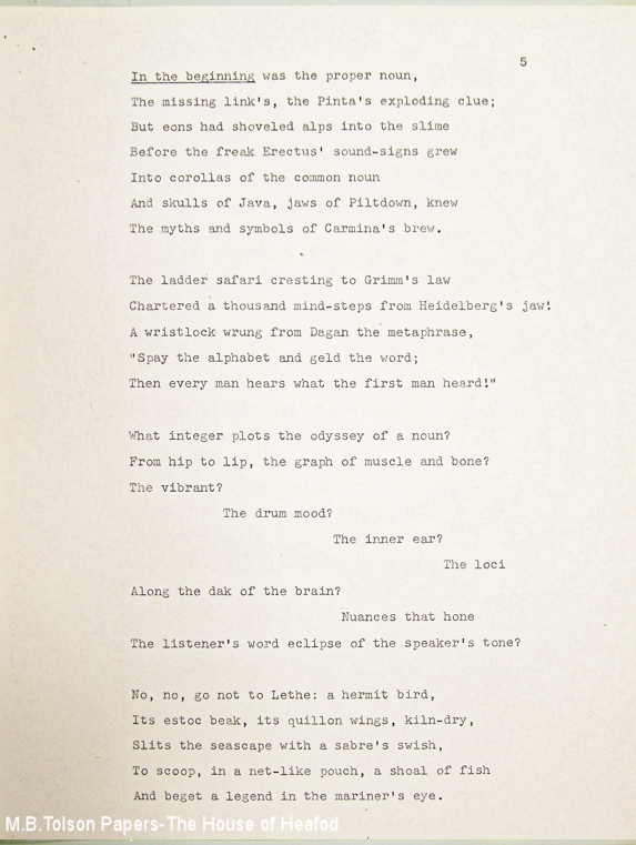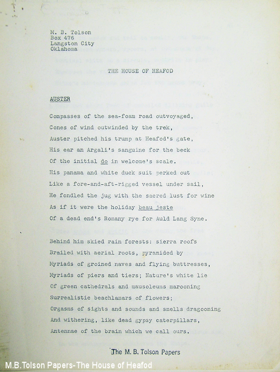 From the Melvin B. Tolson Archives at the Library of Congress Washington D.C.