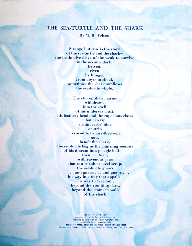 published by Dudley Randall Broadside Press No. 5, 1966 reprinted by Twayne, Inc.