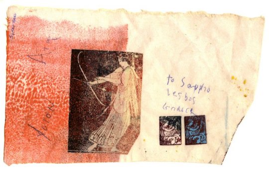 Nancy Spero worked herself to life. Churning through the mayhem done to women is the self-possessed integrity of Lesbos, without patriarchal lesions, ties, woman in love with feminine dynamics. The dildos are aswim in the Dionysus. The male is a lake of bathing female serpents. Aug. 2000 |